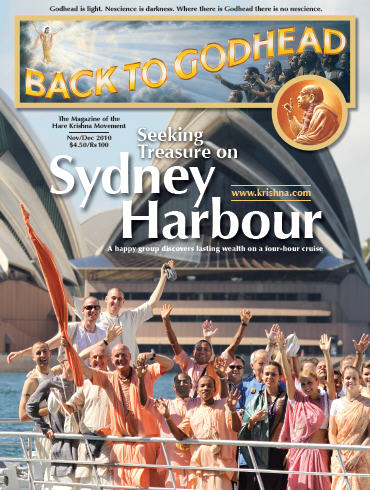 Back To Godhead Volume-44 Number-06, 2010 Nov 1, 2010 | 2010 Issues Welcome, Volume-44 Number-06, 2010 Letters, Volume-44 Number-06, 2010 Stages of Consciousness by His Divine Grace A.C. Bhaktivedanta Swami Prabhupada The God Logic by Abhijit Tolley In Memoriam The Mission of Book Distribution by Karuna Dharini Devi Dasi In Your Own Words Back on the Path Back Home by Sai Bhupalam Becoming Wealthy On $2 a Day by Dhanesvara Dasa Expansions of Illusion Astanga-yoga, Kundalinı, And Bhakti by Jahnudvipa Dasa Seeking Treasure on Sydney Harbour by Gaura Hari Dasa and Sri Prahlada Dasa Indelible Desire by Nagaraja Dasa Vedic Thoughts, Volume-44 Number-06, 2010