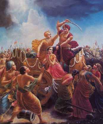[Krsna appears in this world for two purposes, paritranaya sadhunam vinasaya ca duskrtam: to protect the innocent, religious devotees of the Lord and to annihilate all the uneducated, uncultured asuras who unnecessarily bark like dogs and fight among themselves for political power. It is said, kali-kale nama-rupe krsna-avatara. The Hare Krsna movement is also an incarnation of Krsna in the form of the holy name (nama-rupe). Every one of us who is actually afraid of the asuric rulers and politicians must welcome this incarnation of Krsna: Hare Krsna, Hare Krsna, Krsna Krsna, Hare Hare/ Hare Rama, Hare Rama, Rama Rama, Hare Hare. Then we will surely be protected from the harassment of asuric rulers. At the present moment these rulers are so powerful that by hook or by crook they capture the highest posts in government and harass countless numbers of people on the plea of national security or some emergency. Then again, one asura defeats another asura, but the public continues to suffer. Therefore the entire world is in a precarious condition, and the only hope is this Hare Krsna movement.